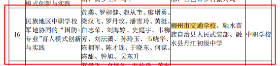 近日,自治区教育厅正式下发了《关于公布2023年广西职业教育自治区级教学成果等次评定结果的通知》,我校教师主持或参与的两项教学成果分别获得广西职业教育自治区级教学成果奖一、二等奖。其中,我校主持的《课程驱动 载体赋能 评价激励:中职学校劳动教育创新与实践》荣获广西职业教育自治区级教学成果等次一等奖;《民族地区中职学校军地协同的“国防+专业”育人模式创新与实践》荣获广西职业教育自治区级教学成果等次二等奖。