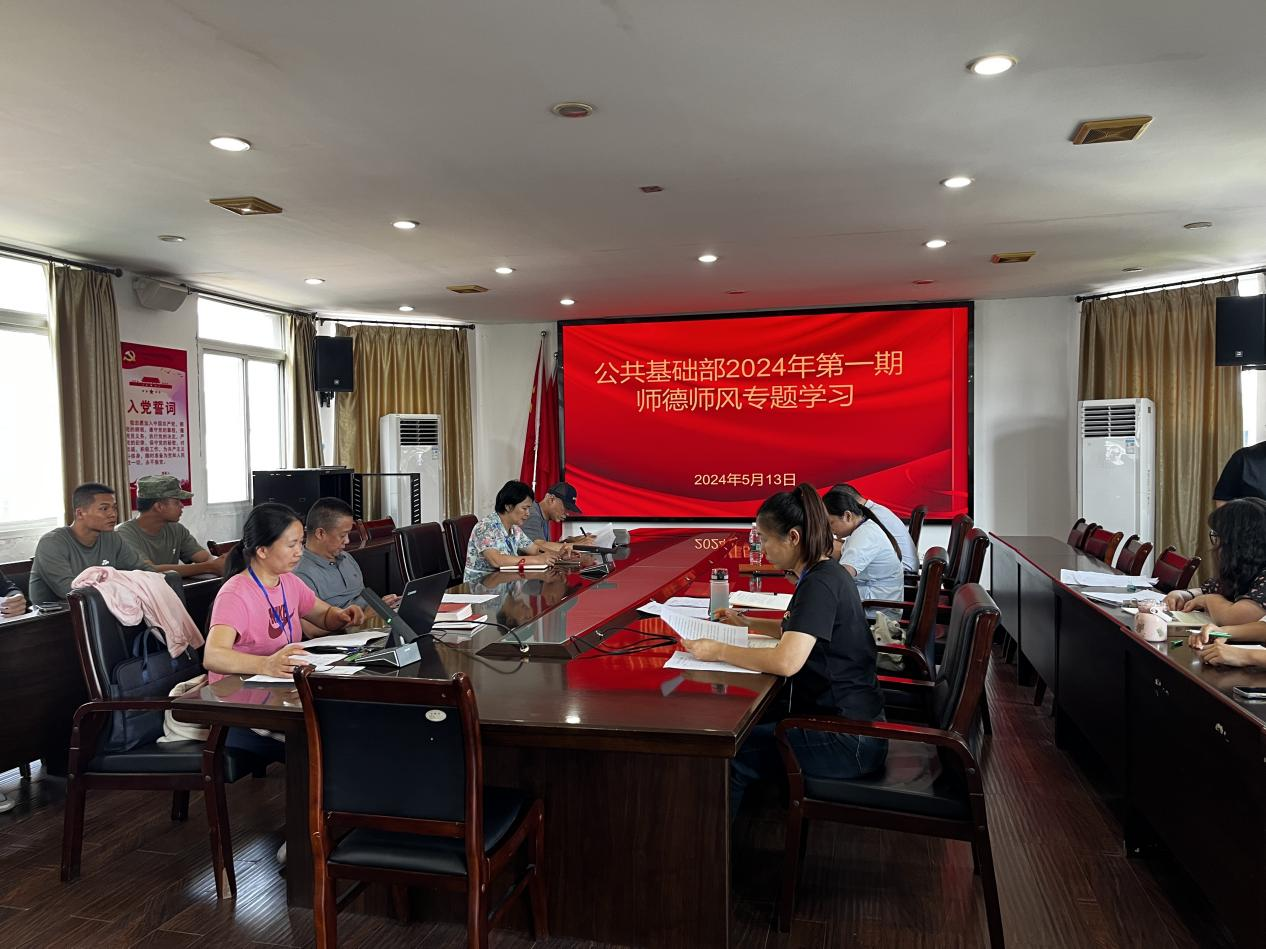 为学习贯彻落实习近平总书记关于大力弘扬教育家精神的重要指示,落实学校党委师德师风建设工作要求,5月13日,公共基础部党支部召开师德师风建设专题会议,学习传达相关文件精神,通报相关典型案例,进一步压实支部责任,以高质量师德师风建设引领高质量教师队伍建设。学校党委副书记、纪委书记梁汉飞出席,支部副书记周雪琴主持会议。