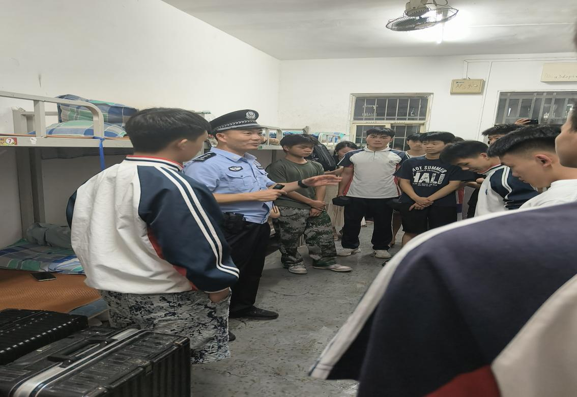 为全面筑牢校园安全屏障,近日,我校邀请河西派出所到我校开展校园安全检查工作。副校长周轶群带领学生工作和安全保卫科(下简称学保科)及各系部分管德育工作副主任陪同派出所一行在学生宿舍开展校警联合校园治安检查行动。