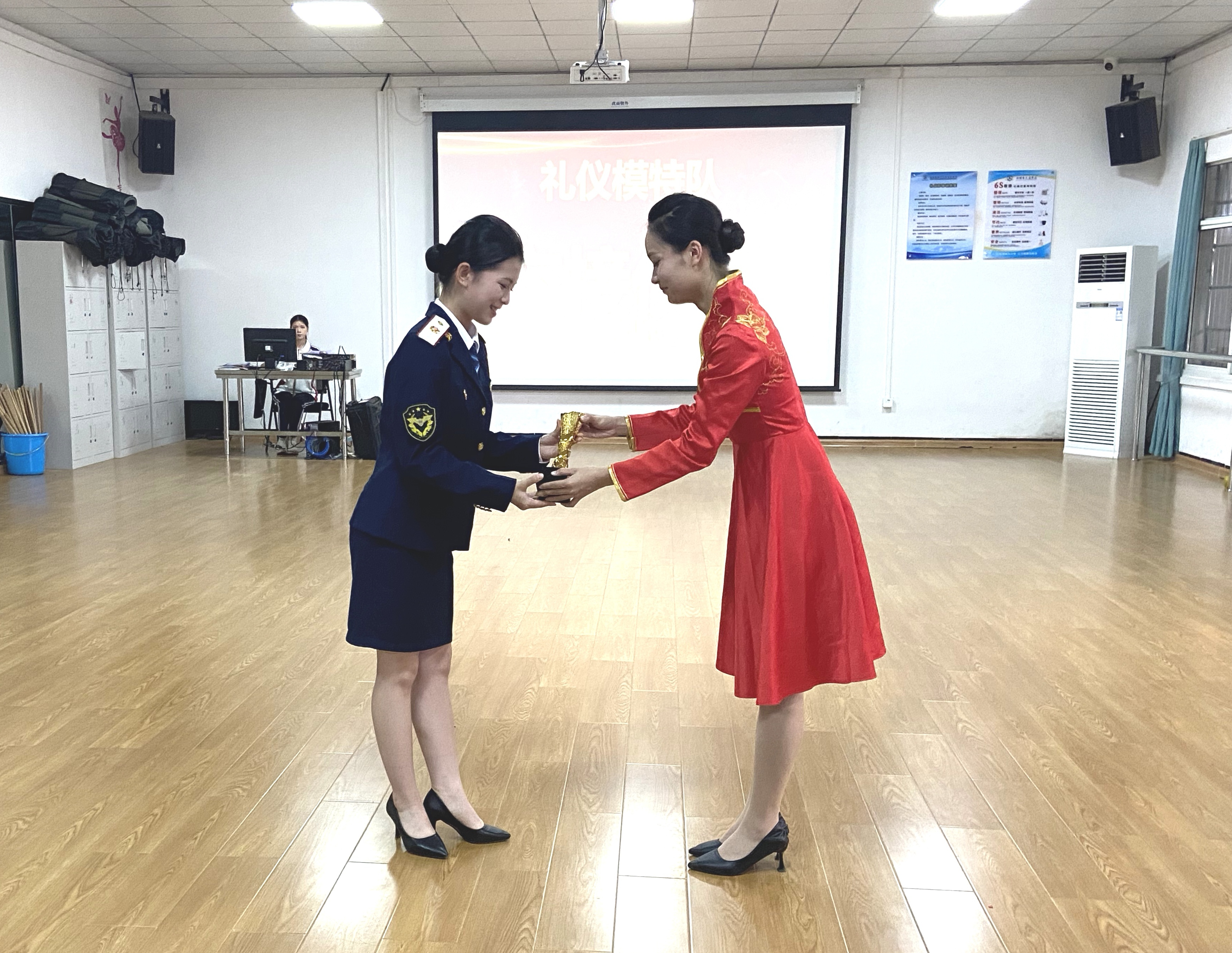 “不学礼,无以立。”学礼,以正立身之本;学礼,以塑民族之魂;学礼,以显大国之风。礼仪队指导老师易敏婷发言,她肯定了2022级队员的努力,感谢她们在学校及系部的各项活动中的付出。同时对队伍中的"新鲜血液"提出了期望,希望新队员能认真学习礼仪知识,树立良好的形象,继续发扬礼仪队的优秀品质,担起各类礼仪活动的任务。礼仪队不仅是交通服务系学子的一张形象名片,更是磨炼品德,锻炼自我的舞台。所有队员共同进步,一起成长,为青春与热情找到最美丽的诠释。
