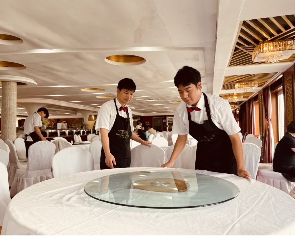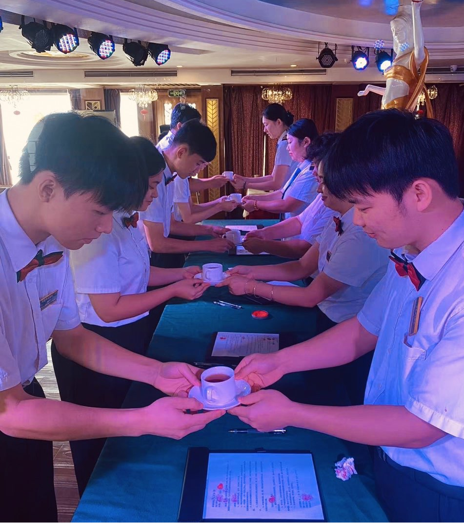 从登上豪华邮轮的那一刻起,同学们便迅速转换角色,从校园里的学生转变为邮轮上的一名名专业乘务员。他们被分配到客房服务、餐饮服务、娱乐活动等各个岗位,开始了紧张而充实的实习生活。每个学生都由一名经验丰富的导师进行一对一指导,这种师徒结对的模式,不仅让学生们能够在实践中快速提升个人技能,还有助于他们更好地理解行业需求和工作标准。