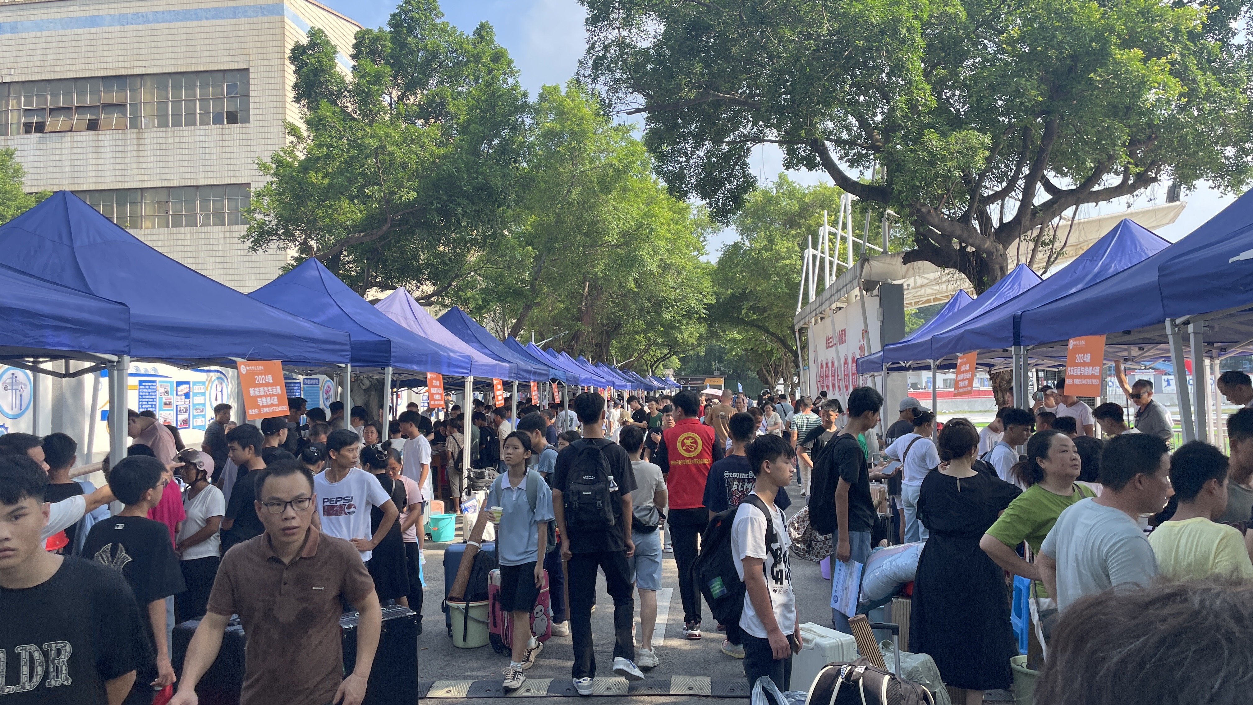 随着时间的推移,校园内逐渐变得人声鼎沸,热闹非凡。或手拉行李箱,或肩扛背包,有的新生停下脚步,拿出手机拍下这难忘的瞬间;有的根据报到指南,快速找到自己的班级办理报到手续。带着对未来的无限憧憬,在家长和亲友的陪伴下,穿过熙熙攘攘的迎新人群,穿梭于各个报到处之间,每一张青春洋溢的脸庞上都写满了对学校生活的期待与好奇,老师和家长们也纷纷拿起手机,记录下这珍贵而难忘的一刻。