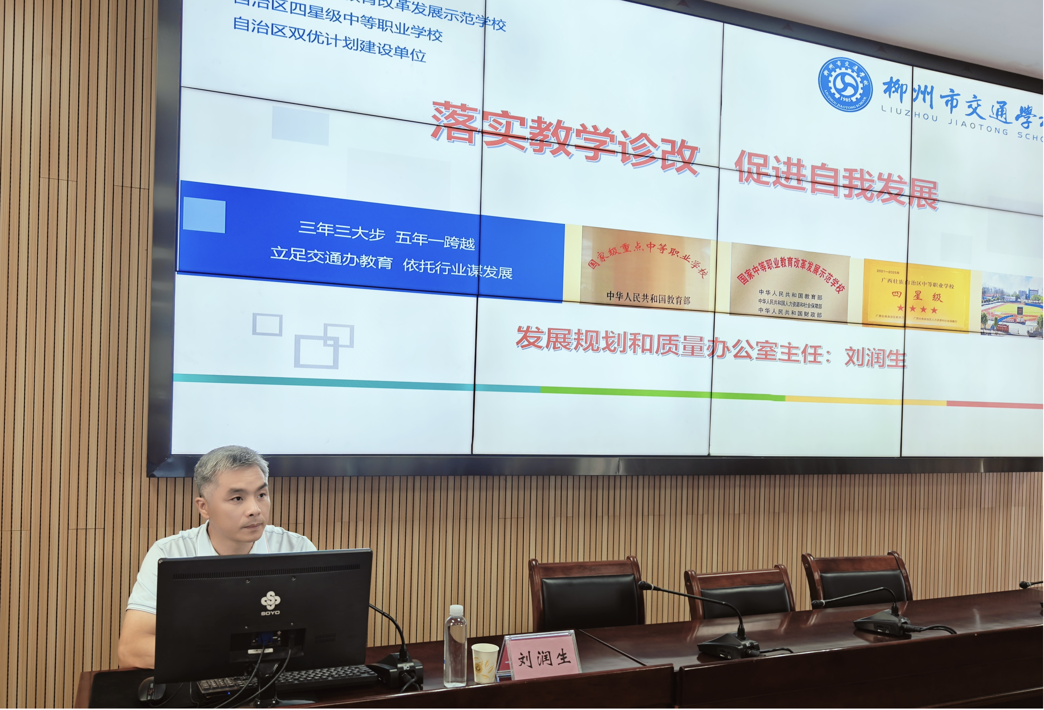 发展与质量办主任刘润生则以深入浅出的方式介绍了教师诊改,刘主任不仅从制度政策出发,也介绍了学校层面的运行机制。从三个方面向新老师们提出了要求,分别是一:提高认识,加深理解、二:自我提升,尽快准备、三、砥砺前行,奋发向上。希望新教师们能将教学诊改纳入日常工作中,不断提升自身能力和水平,做真正优秀的中职新教师。希望新教师们能将教学诊改纳入日常工作中,不断提升自身能力和水平,做真正优秀的中职新教师。