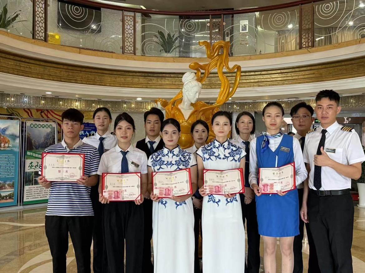 今年七月伊始,我校37名邮轮乘务专业的同学开始了他们在重庆大美长江三峡游轮股份有限公司的专业实习。金秋时节,重庆大美长江三峡游轮股份有限公司举办盛大的岗位技能PK赛。喜报传来,在这场高手如云的竞技中,柳州市交通学校交通服务系的22级同学们在岗位技能大赛中取得了骄人的成绩!他们凭借卓越的表现和出色的实力,赢得了掌声与荣誉。