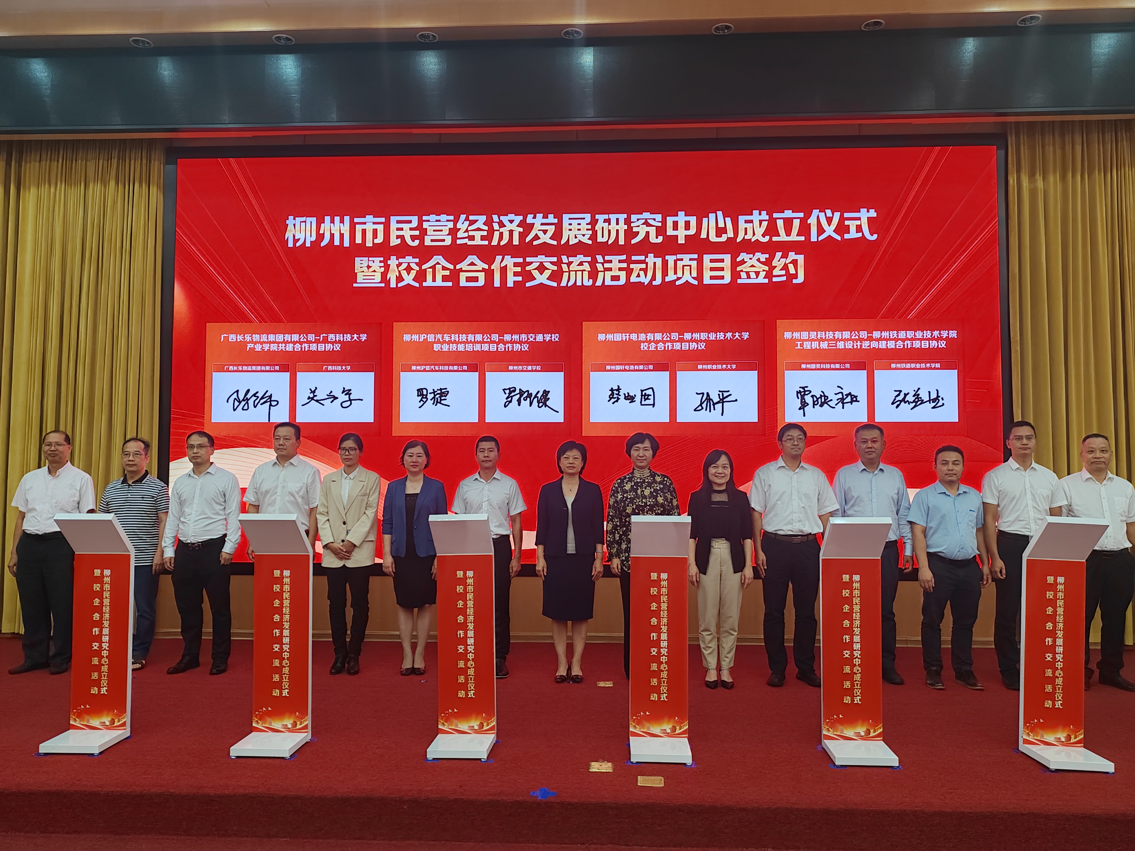 10月18日上午,柳州市民营经济发展研究中心成立仪式暨校企合作交流活动在广西科技大学举行。