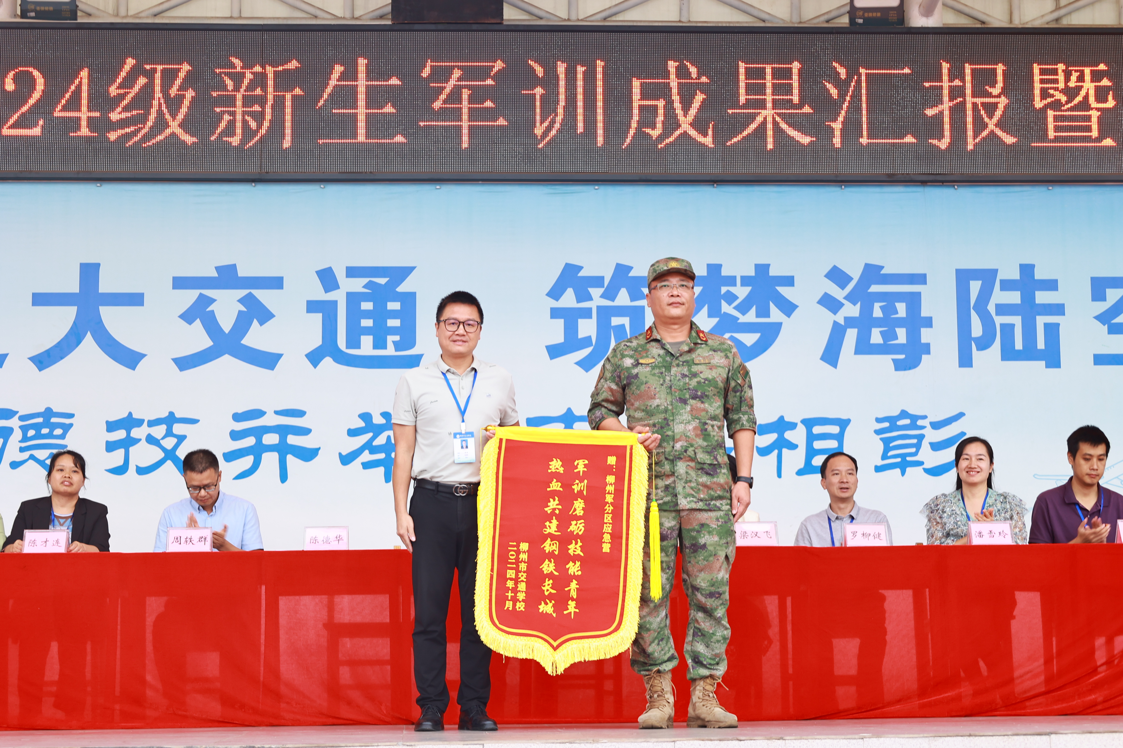 10月15日,我校举行了2024年军训汇报暨总结表彰大会,为期七天的新生军训在庄严而热烈的汇演中圆满落下帷幕。此次汇演邀请到柳州军分区应急营副营长陈德华担任评委。校党委书记廖增勇、校长黄䶮,校党委副书记、纪委书记梁汉飞,副校长周轶群,副校长罗柳健出席大会。