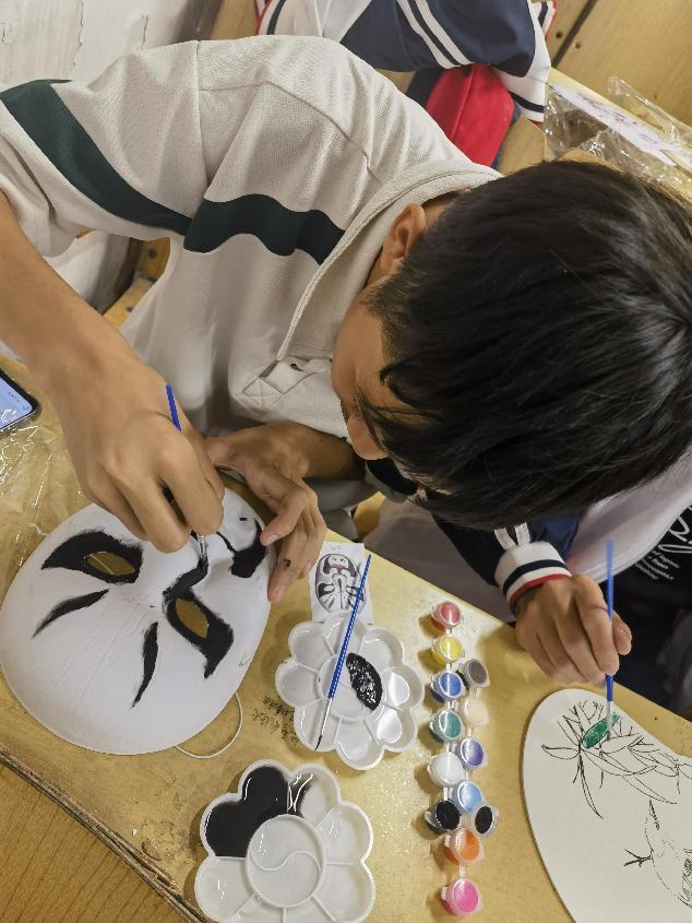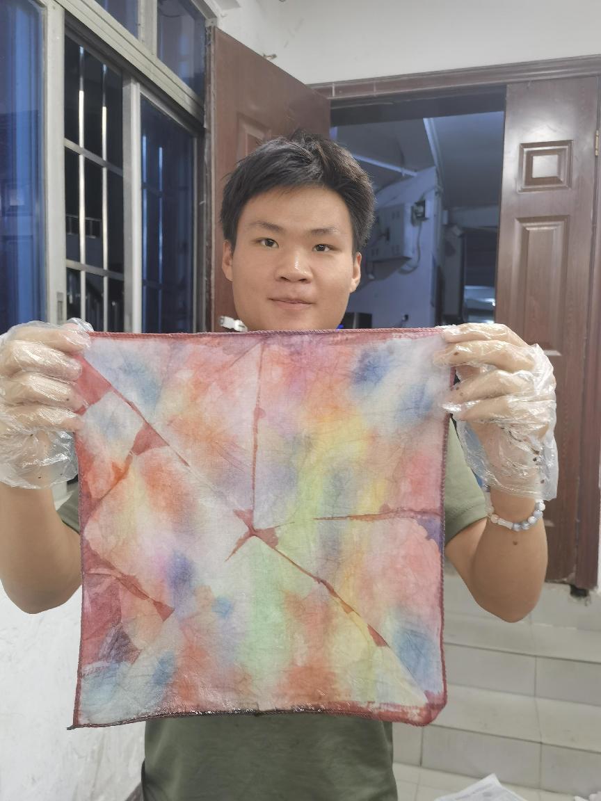 接着,民族手工艺活动开始。本次手工艺活动包含制作漆扇、体验扎染,制作绣球、绘制面具和团扇。在富有手工经验的同学的指导下,同学们纷纷动手尝试制作自己的手工艺品。他们或认真聆听讲解,或仔细琢磨技艺,或相互交流心得,现场气氛热烈而温馨。经过一番努力,一个个精美的手工艺品在参与者们的手中诞生,每个人脸上洋溢着满足和自豪的笑容。