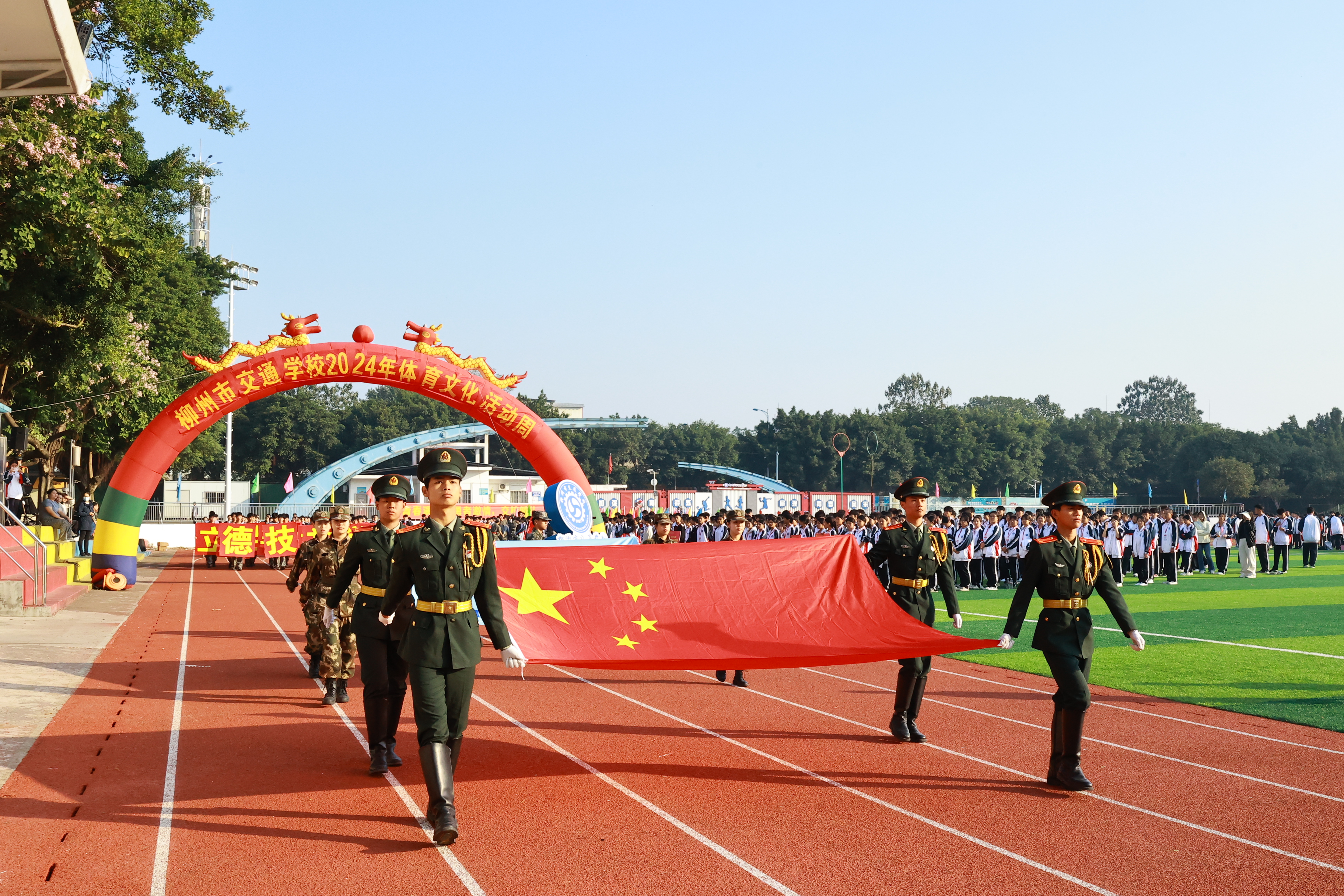 随着雄壮的国歌声响起,五星红旗在全体师生的注目礼中冉冉升起。校长黄䶮发表了热情洋溢的开幕词,他鼓励同学们发扬体育精神,挑战自我,超越极限,并预祝本次活动圆满成功;裁判员代表岑小谈则承诺将秉公执法,确保比赛的公平、公正、公开;运动员代表梅海洋庄严承诺将遵守比赛规则,发扬友谊第一、比赛第二的精神。