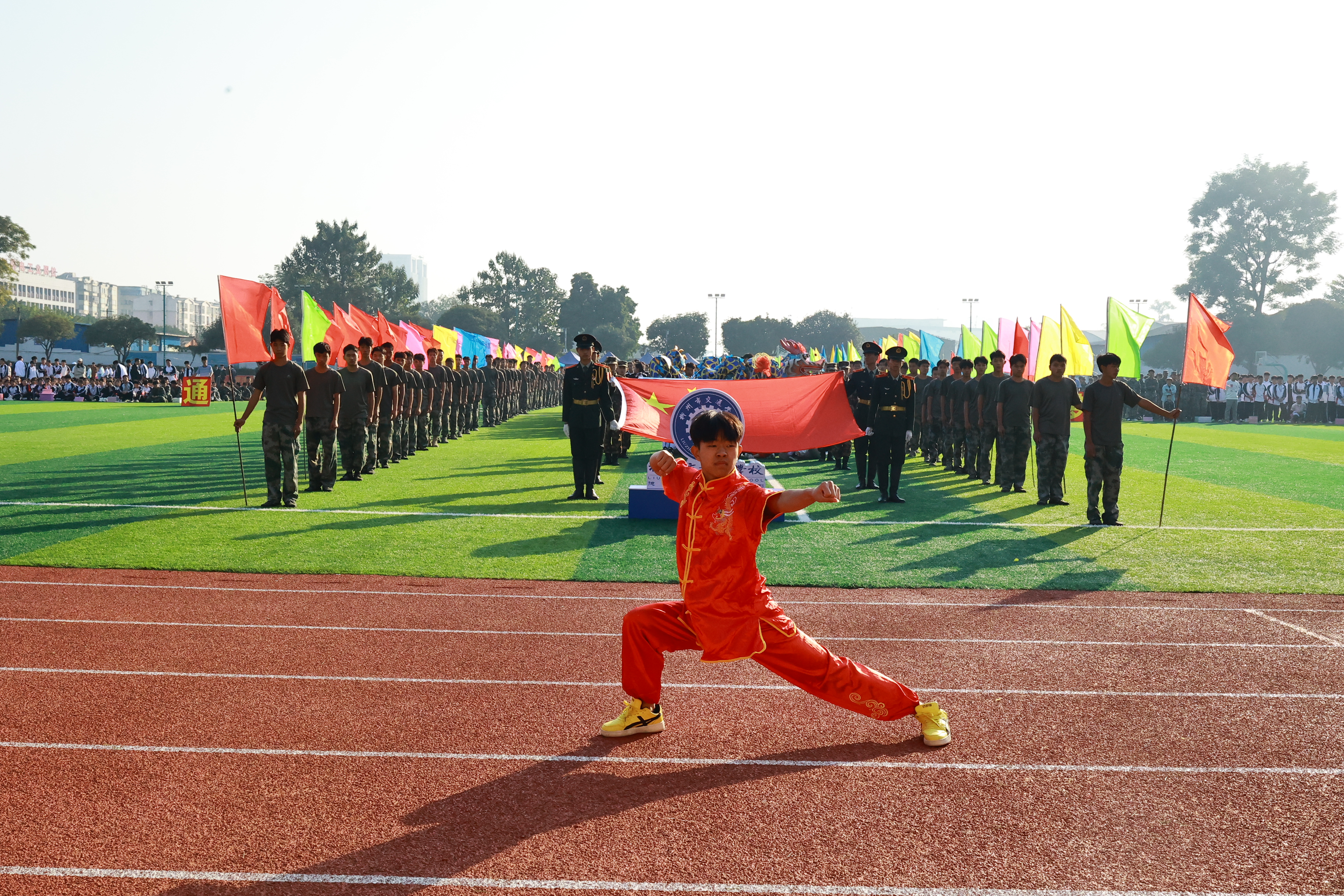 开幕式由各专业特色方阵依次入场开始。他们身着统一的服装,步伐整齐,口号响亮,动作一致,为观众带来了精彩纷呈的演出。他们的表演不仅展示了学校艺术教育的成果,也彰显了同学们多才多艺的一面,展现了青春的风采和专业特色。
