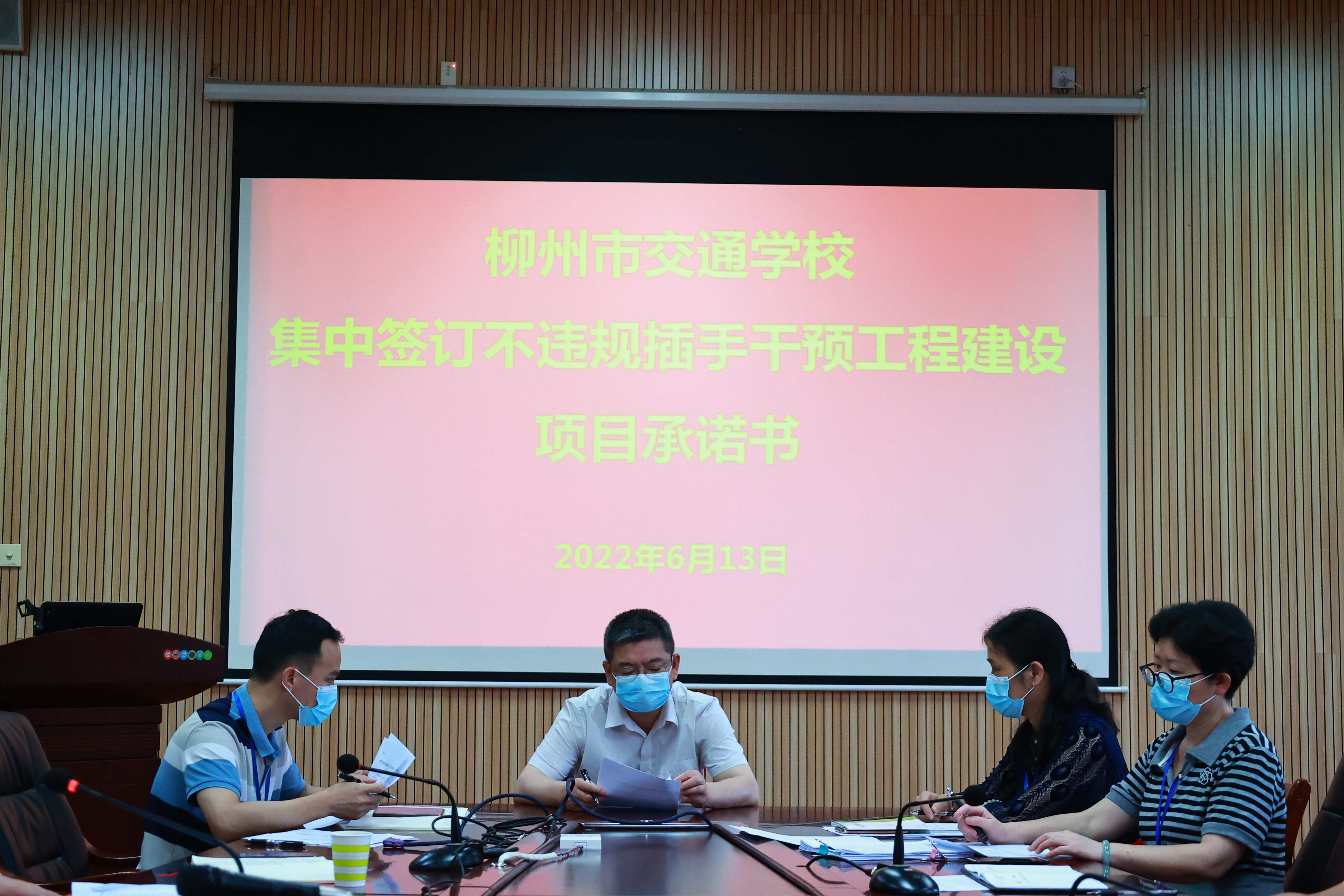 会上,党委副书记、纪委书记孔祥飞就《通知》内容组织领导干部认真学习《柳州市领导干部违规插手干预工程建设项目向纪检监察机关报告制度(试行)》文件精神,并组织中层以上领导干部签订《领导干部不违规插手干预工程建设项目承诺书》。