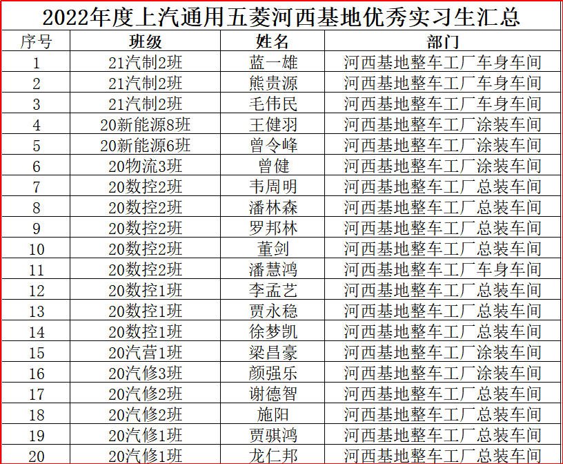 祝贺我校40名学生被校企合作单位上汽通用五菱汽车股份有限公司授予“优秀实习生”荣誉称号,为我校其他同学树立了榜样。